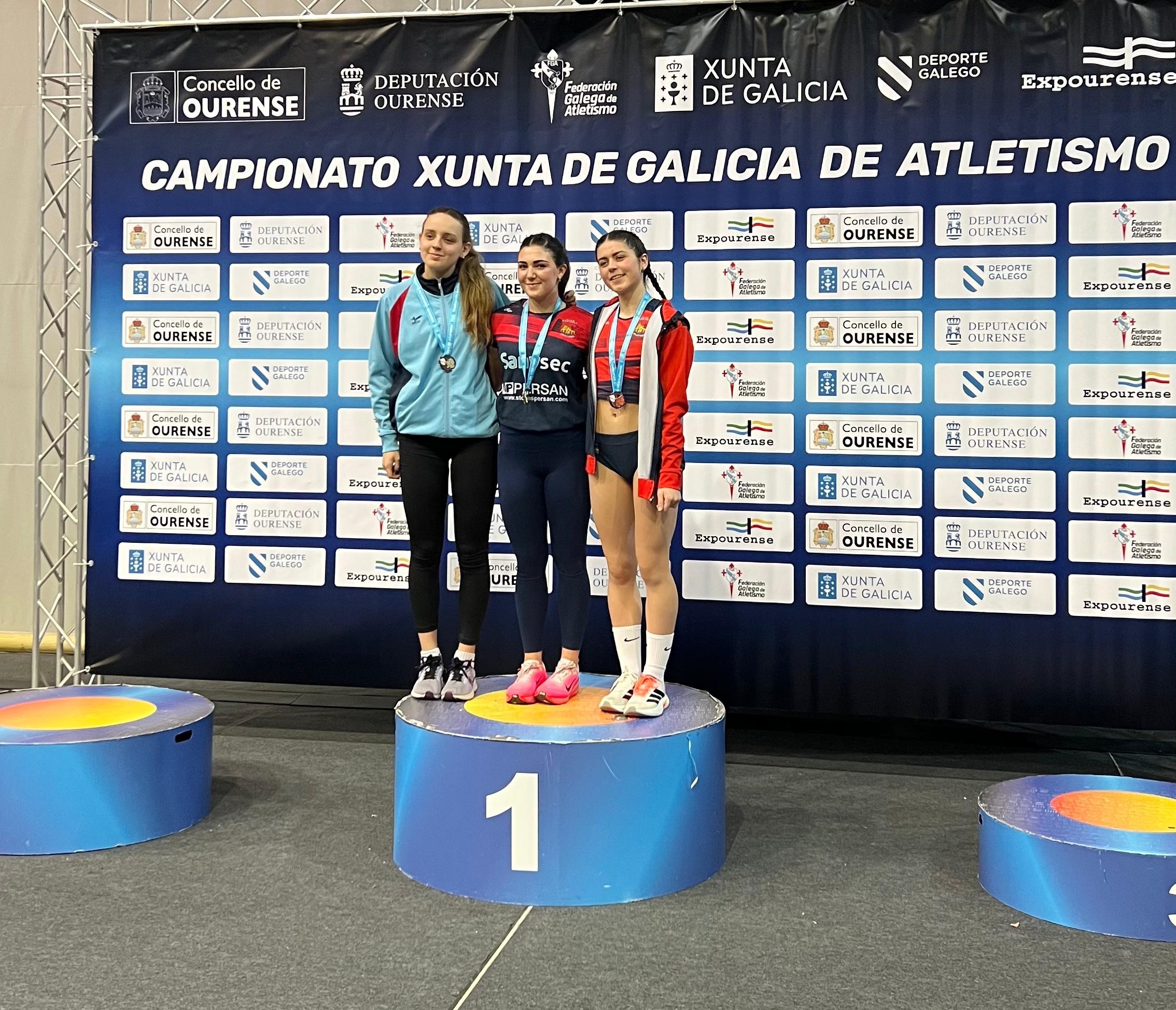 • Manuela Blanco gañou en pértega con 3.80 metros. Fixo un salto válido en 3.65, que xa lle bastaría para gañar o campionato, e o válido en 3.80. Os tres nulos realizounos sobre o 3.6